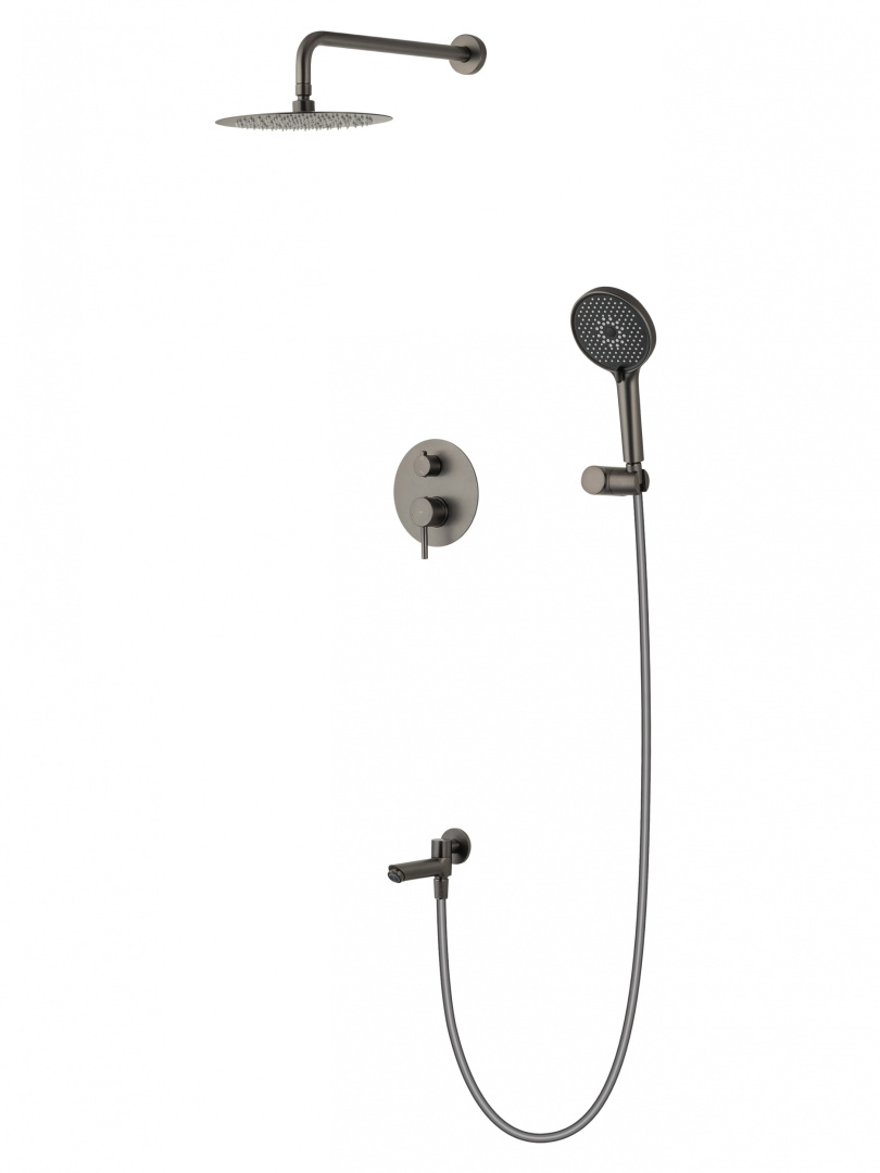 Душевой комплект Wonzon & Woghand Solo С ВНУТРЕННЕЙ ЧАСТЬЮ, цвет темный графит, поверхность брашированная купить в Москве – цены в интернет-магазине Santehpodbor