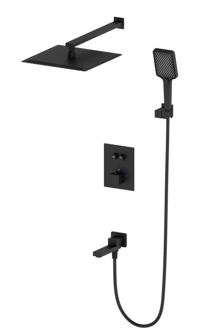 ● Душевая система с термостатом встраиваемая WONZON & WOGHAND, Черный матовый (WW-88929003-MB)
