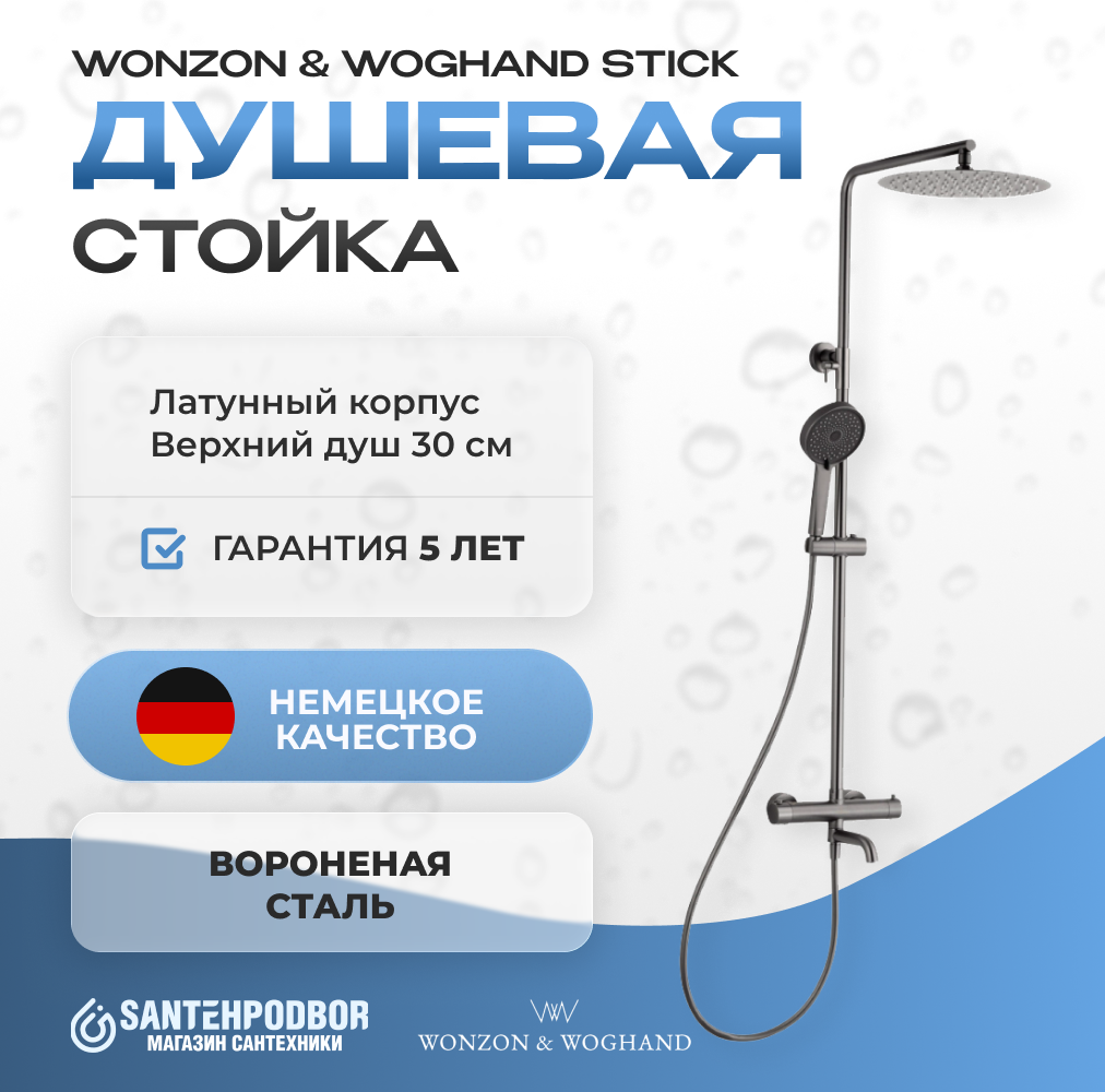 ● Душевая система с термостатом WONZON & WOGHAND Stick, Темный графит (WW-88739903-BGM)