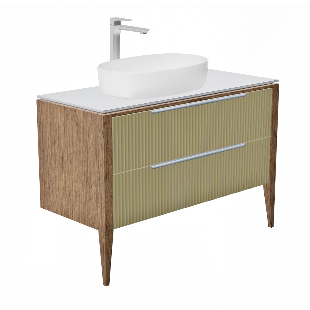 Тумба со столешницей ЗОВ Валенсия V100Z-KPW 100 см подвесная/напольная цвет зеленый тростник в интернет-магазине сантехники Santehpodbor