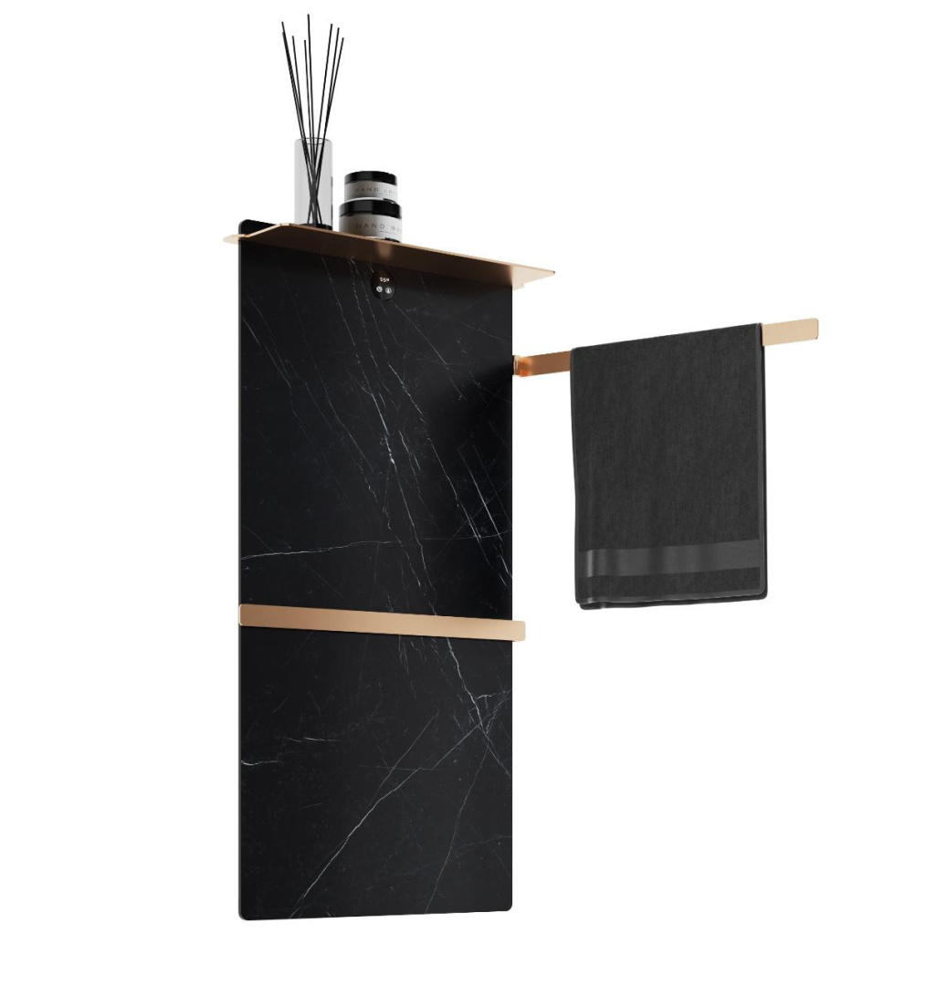 Полотенцесушитель электрический с каменной плитой черный мрамор Wonzon & Woghand STUTTGART 43х80,6 цвет золото, поверхность брашированная