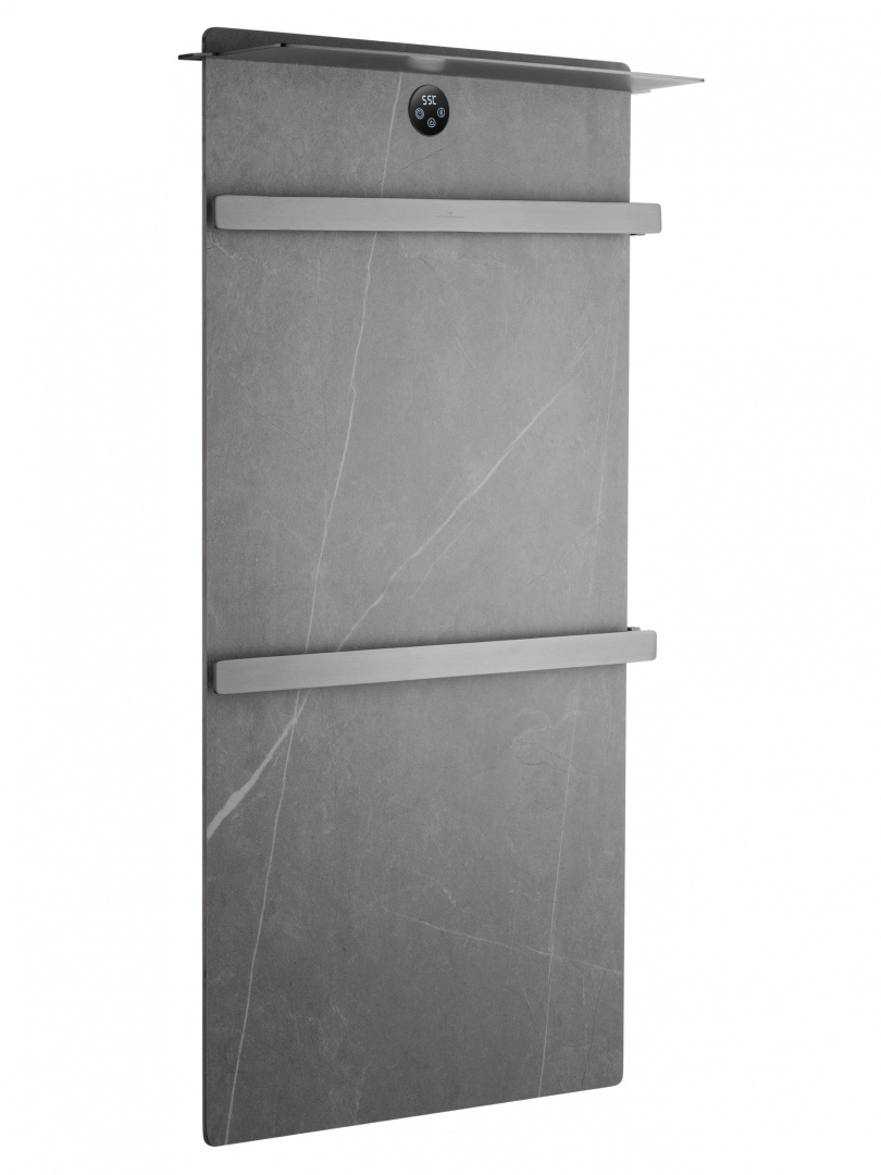 Полотенцесушитель электрический с каменной плитой серый мрамор Wonzon & Woghand STUTTGART 43х80,6 цвет темный графит, поверхность брашированная