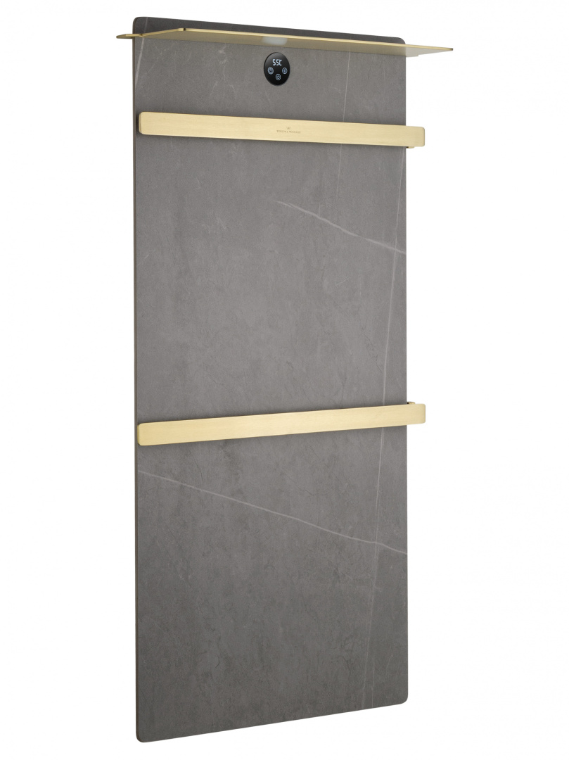 ● полотенцесушитель электрический с каменной плитой серый мрамор Wonzon & Woghand STUTTGART 43х80,6 цвет золото, поверхность брашированная