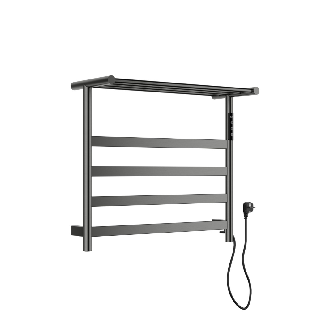 Полотенцесушитель электрический с полкой Wonzon & Woghand ESSEN 57,5х50,95 цвет темный графит, поверхность брашированная купить в Москве – цены в интернет-магазине Santehpodbor