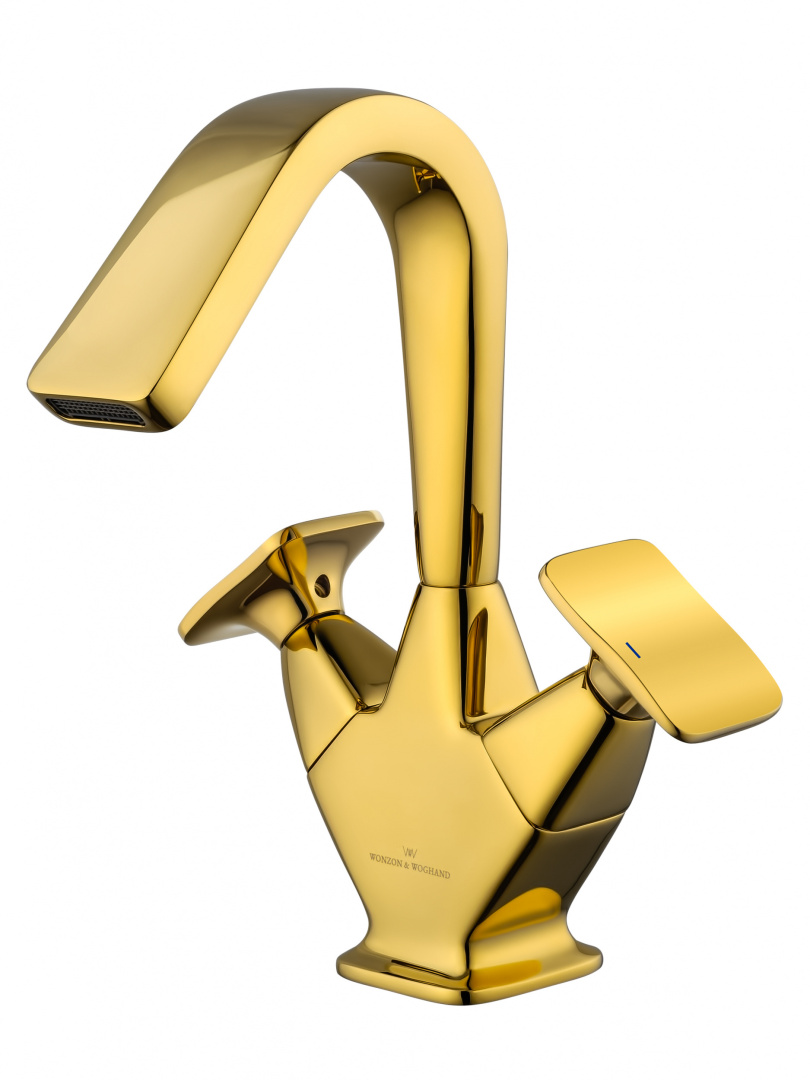 Смеситель для раковины высокий Wonzon & Woghand SHAKESPEARE золото, поверхность глянцевая