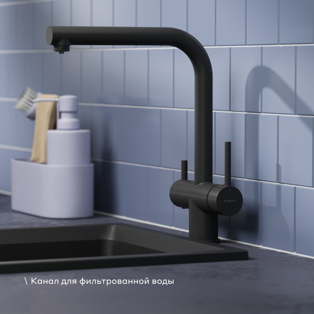 Смеситель для кухни с каналом для фильтрованной воды Pragma Esdel, матовый черный, ESD7.B2LF.014 купить в Москве – цены в интернет-магазине Santehpodbor